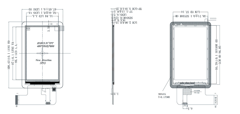 | Área Ativa | 51,84(L)*86,4(H) | Luminância | 500cd/㎡ /Brilho é selecionável |