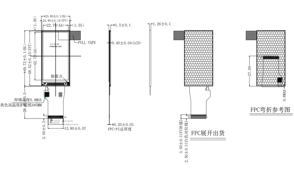 A tela de barra de 1,9 polegadas tem resolução de 170 * 320, oferecendo tela delicada e de alta definição, ângulo de visão completo IPS e suporta interfaces SPI/MCU/RGB. Ele usa o driver IC ST7789 maduro, garantindo confiabilidade e estabilidade. O formato da barra de 1,9 polegadas atende perfeitamente às necessidades de “faixa de exibição de informações” de muitos dispositivos, integrando-se perfeitamente em engastes estreitos, laterais, pulseiras ou alças sem ocupar o espaço visual e operacional principal. Seu tamanho pequeno e consumo de energia extremamente baixo sobrecarregam o sistema principal, permitindo a exibição sempre ativa de informações essenciais, tornando-o uma solução que economiza bateria.