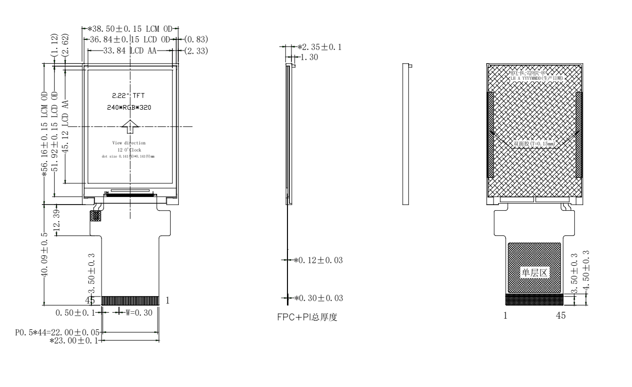 A Shenzhen Hongjia Technology fornece telas LCD de 2,2 polegadas há muito tempo, mantendo um estoque seguro para garantir o fornecimento contínuo. Este display LCD de 2,2 polegadas tem uma resolução de 240 * 320, usa o IC ST7789 maduro, oferece alta confiabilidade e suporta interfaces SPI / MCU / RGB, incluindo interfaces SPI de 3/4 fios, interfaces MCU de 8 bits / 16 bits e interfaces RGB de 16/18/24 bits. A tela TFT de 2,2 polegadas está posicionada entre telas LCD de 2,4 e 2,8 polegadas, adequada para clientes que exigem um tamanho pequeno, e também suporta microcontroladores. Foi preferido por muitos clientes. Também fornecemos serviços personalizados, incluindo interfaces de cabos flexíveis, brilho da luz de fundo e telas sensíveis ao toque.